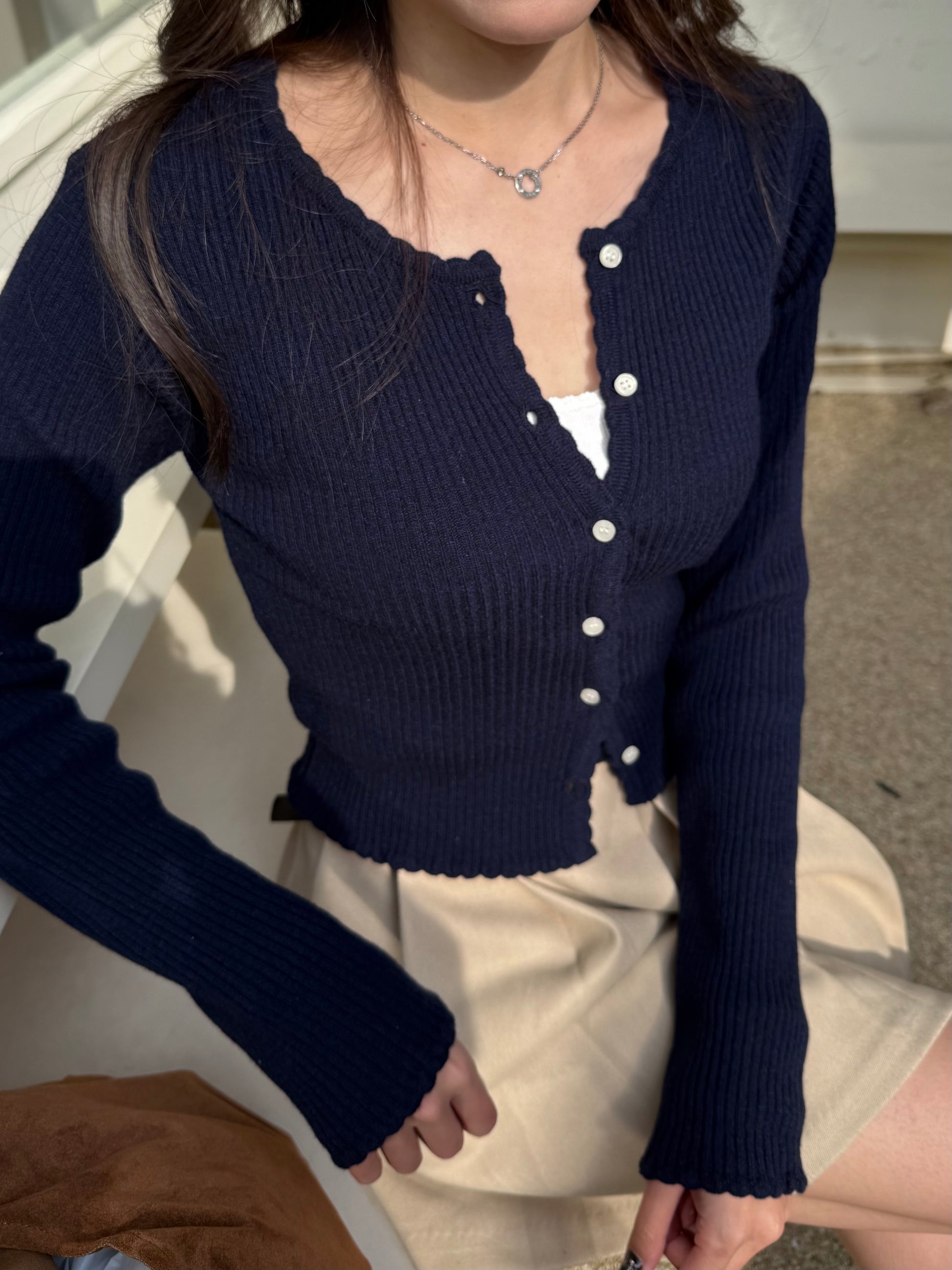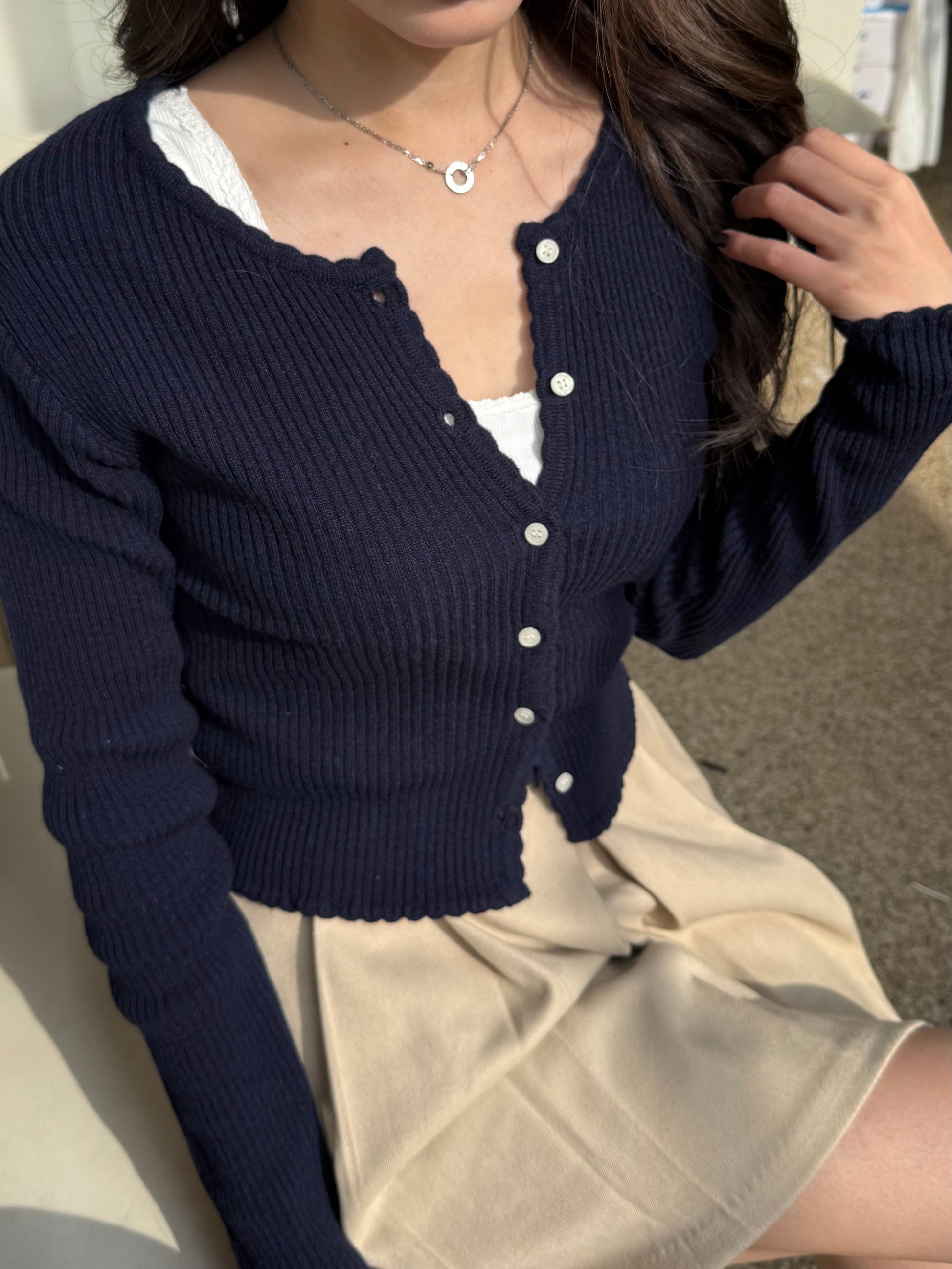 開胸花邊針織上衣